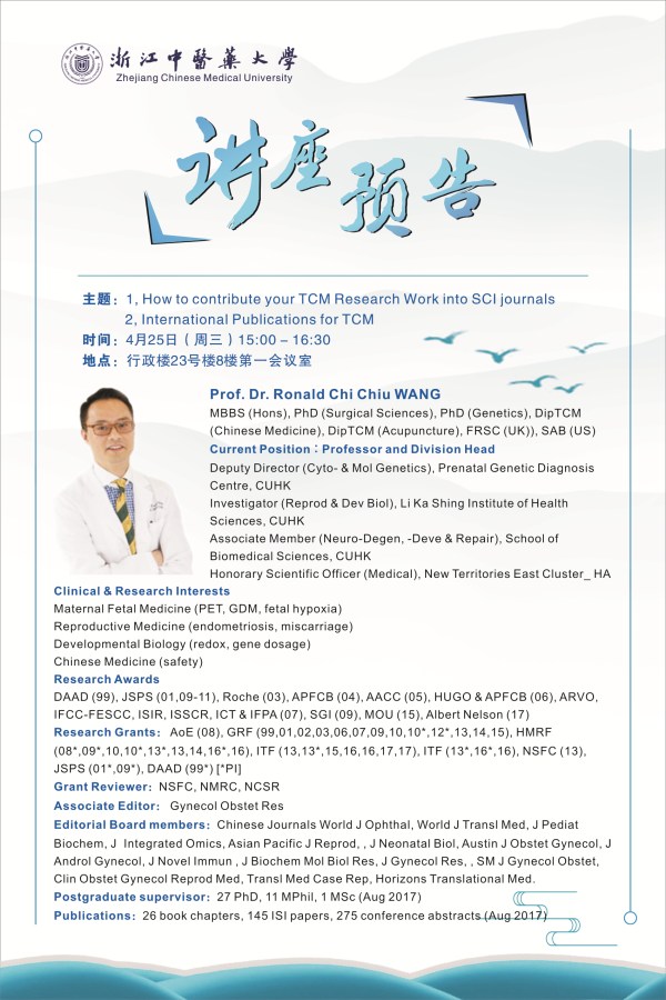 讲座预告:1.如何发表中医类SCI论文 2. 中医国际发表