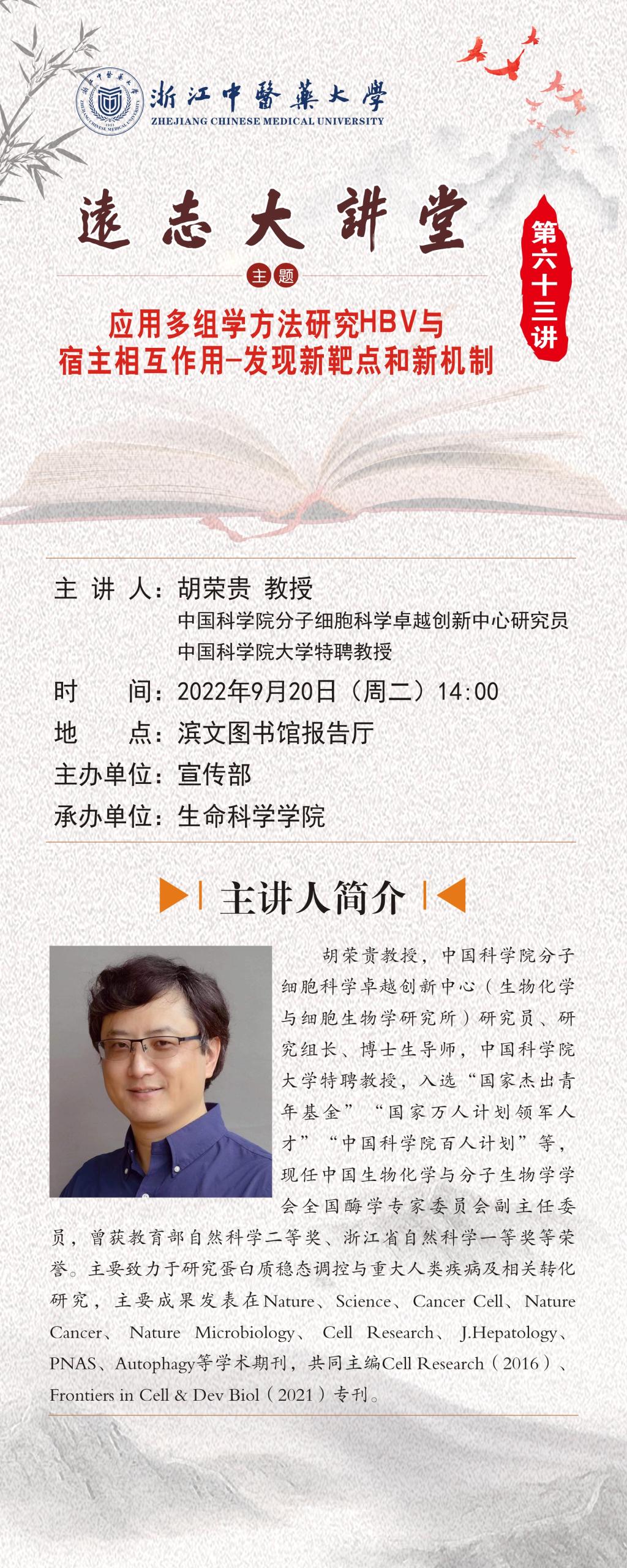 远志大讲堂第六十三讲预告:应用多组学方法研究HBV与宿主相互作用——发现新靶点和新机制