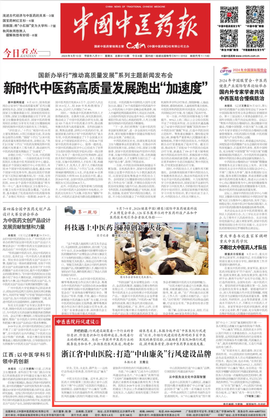 孙思邈《千金要方》载:“若针而不灸,灸而不针,皆非良医。针灸而不药,药而不针灸,尤非良医也。”以“中山廉灸”行风建设模式为抓手,中山医院厚植中医博大精深的思想土壤,推动清廉医院建设走深走实。