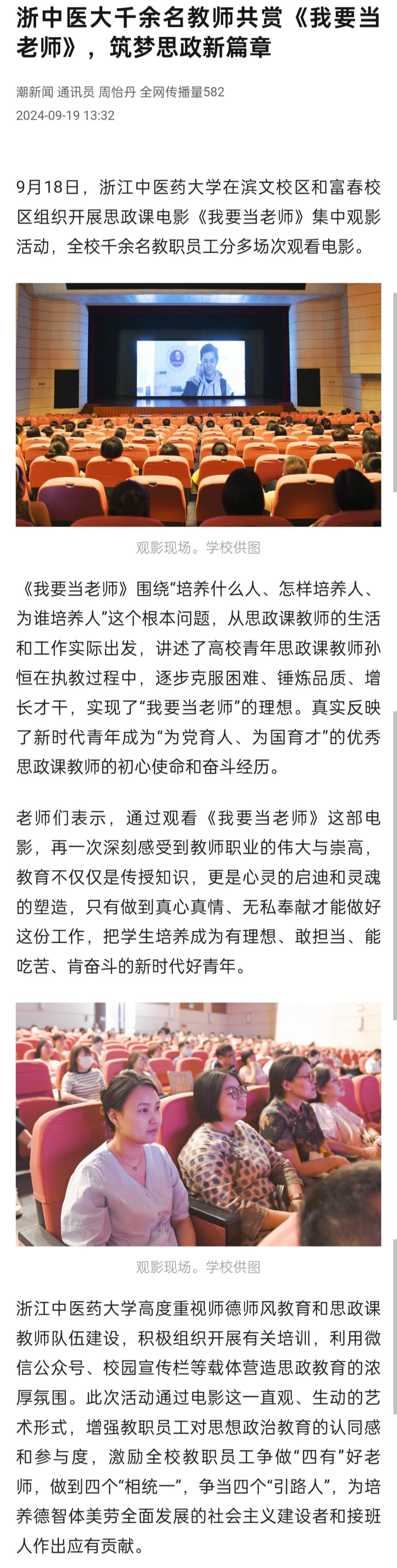 浙中医大千余名教师共赏《我要当老师》,筑梦思政新篇章