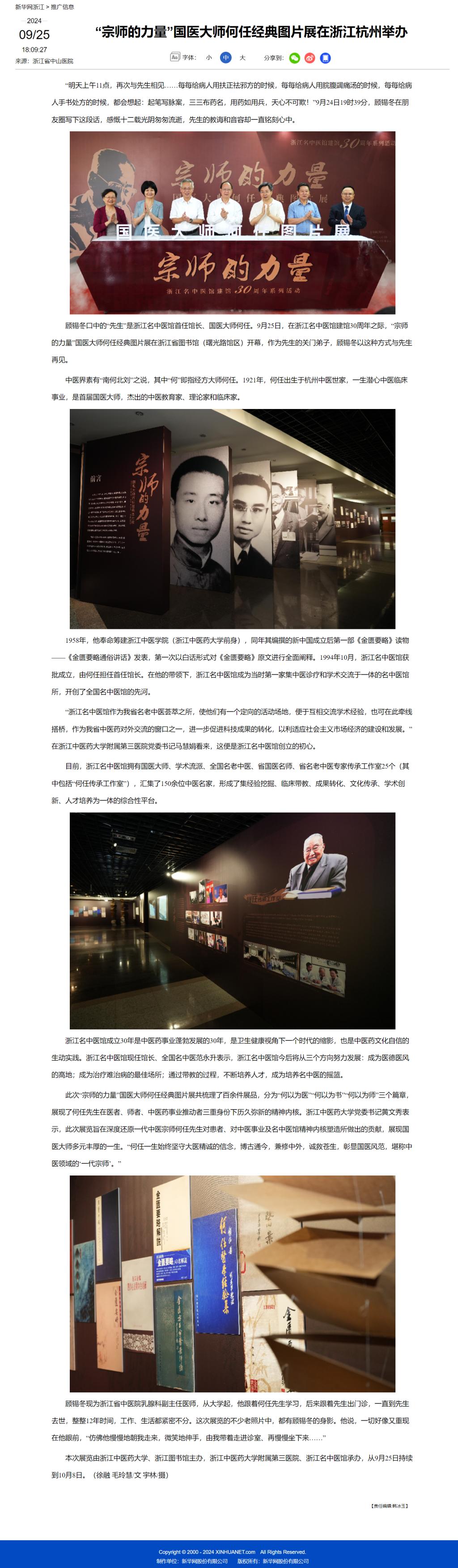 新华网:“宗师的力量”国医大师何任经典图片展在浙江杭州举办