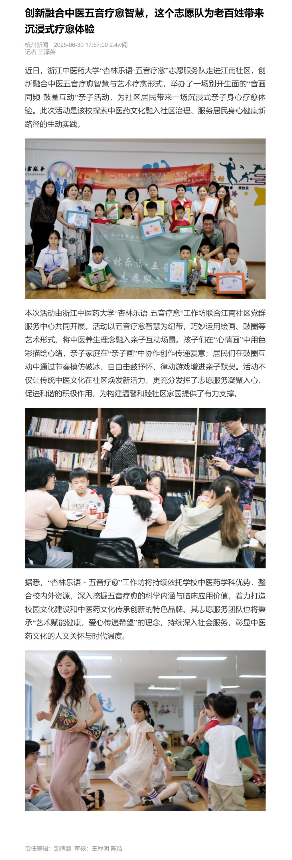 杭州新闻:创新融合中医五音疗愈智慧,这个志愿队为老百姓带来沉浸式疗愈体验