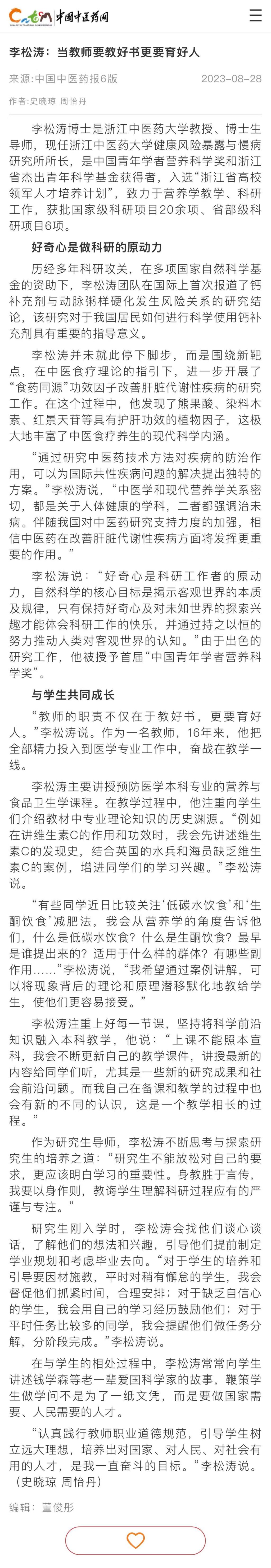 “认真践行教师职业道德规范,引导学生树立远大理想,培养出对国家、对人民、对社会有用的人才,是我一直奋斗的目标。”李松涛说。
