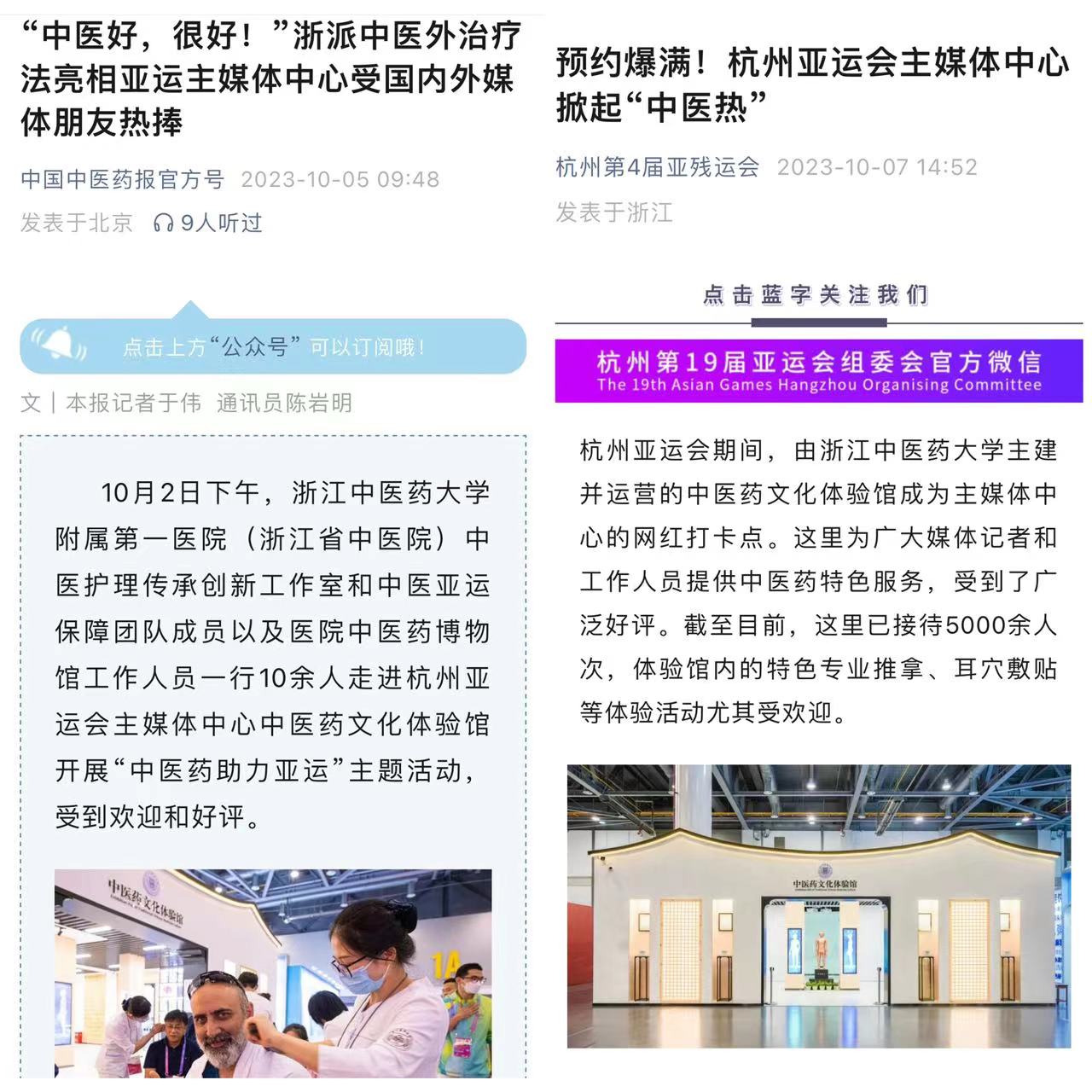 中国中医药报:“中医好,很好!”浙派中医外治疗法亮相亚运主媒体中心受国内外媒体朋友热捧