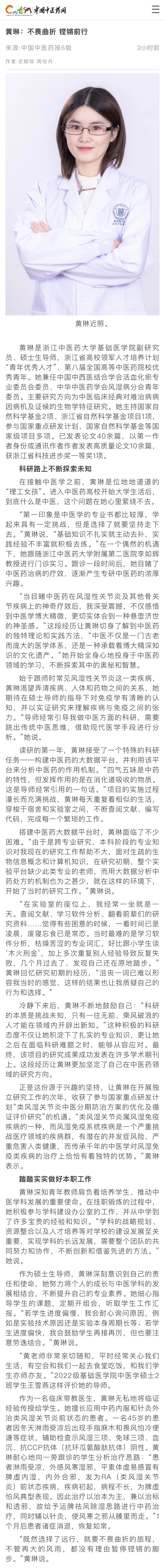 中国中医药报、中国中医药网:黄琳:不畏曲折 铿锵前行