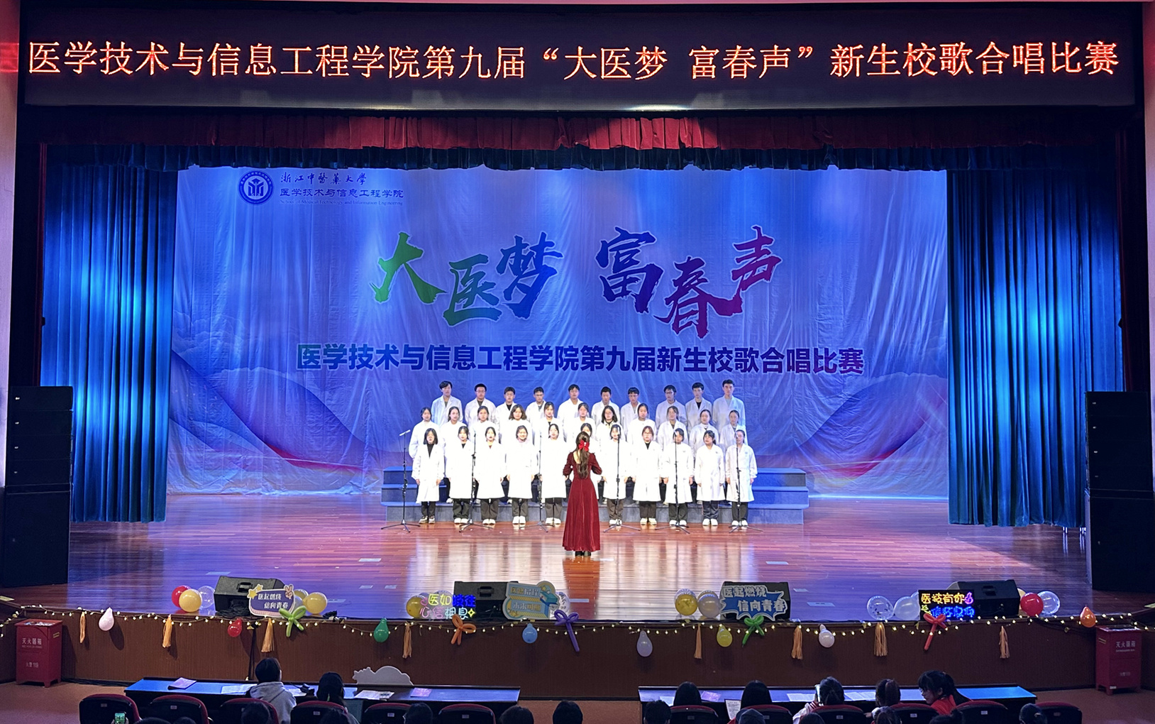“巍巍六和,浩浩钱江。道承岐黄,源远流长……”近日,久久精品一区二区三区四区医学技术与信息工程学院举行“大医梦、富春声”新生校歌合唱比赛。17个大一学生班级各着统一服装,精神饱满在舞台上演唱校歌。他们时而深情献唱,时而变换队形,形式丰富多样,引人入胜。