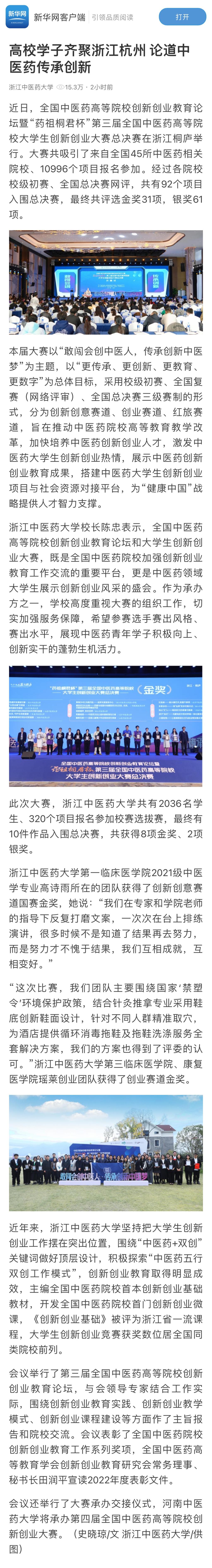 新华网、潮新闻:高校学子齐聚浙江杭州 论道中医药传承创新