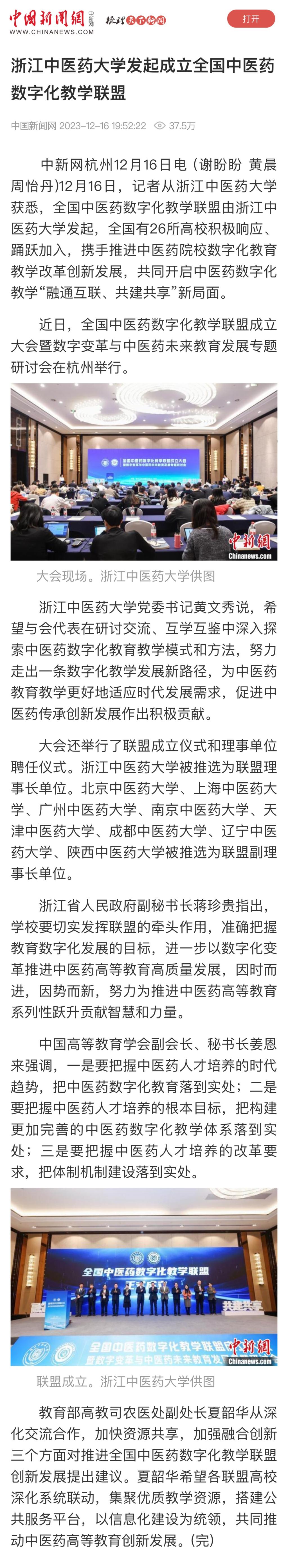 近日,全国中医药数字化教学联盟成立大会暨数字变革与中医药未来教育发展专题研讨会在杭州举行。