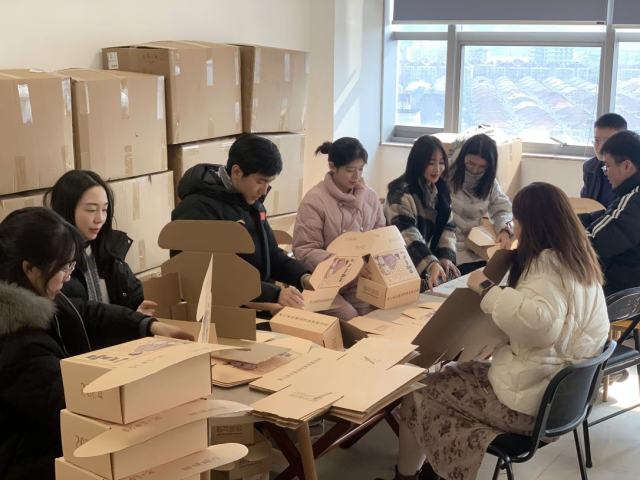 今年的新年邮局礼物,从创意策划、工艺设计,再到定制包装,均由学院12名辅导员老师自主完成,历时半年筹备,用时两天两夜亲手包装,最终完成2700多份极具中医药文化特色的新年礼盒。礼物内含印制了学院“三有医学青年”卡通形象的可折叠泡脚桶和独家定制的中药泡脚包。
